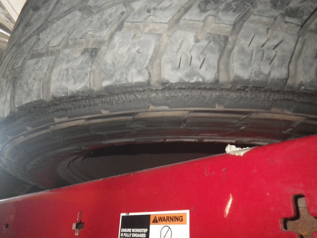 My 2008 LR3 has had Nitto Terra Grapplers (285/60R 18) for years now. I always knew they rubbed in a little under certain conditions but the damage to the tires I'm seeing looks worse than I would expect.